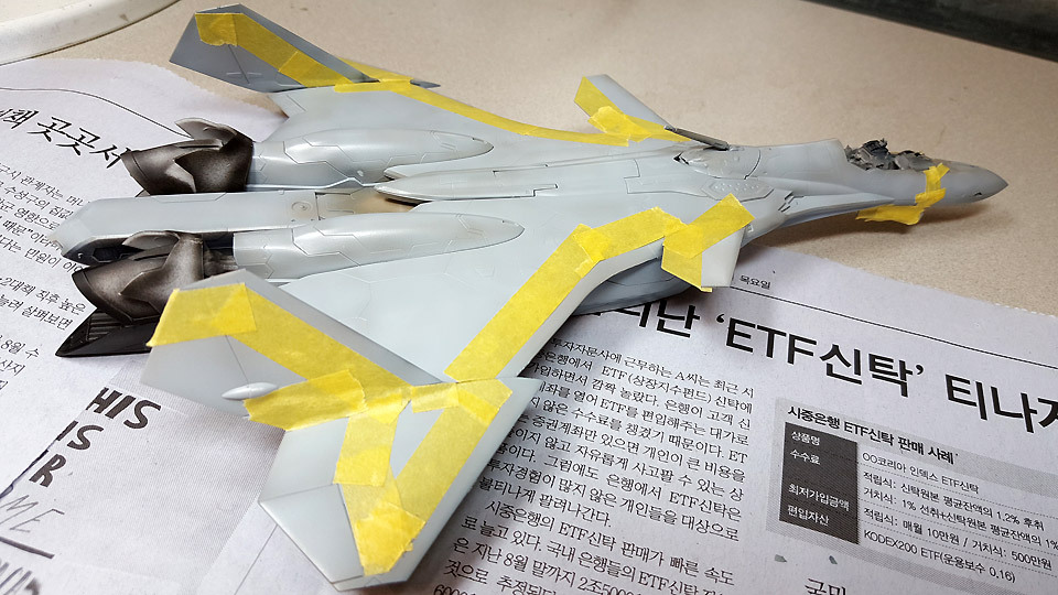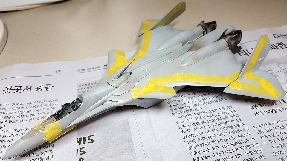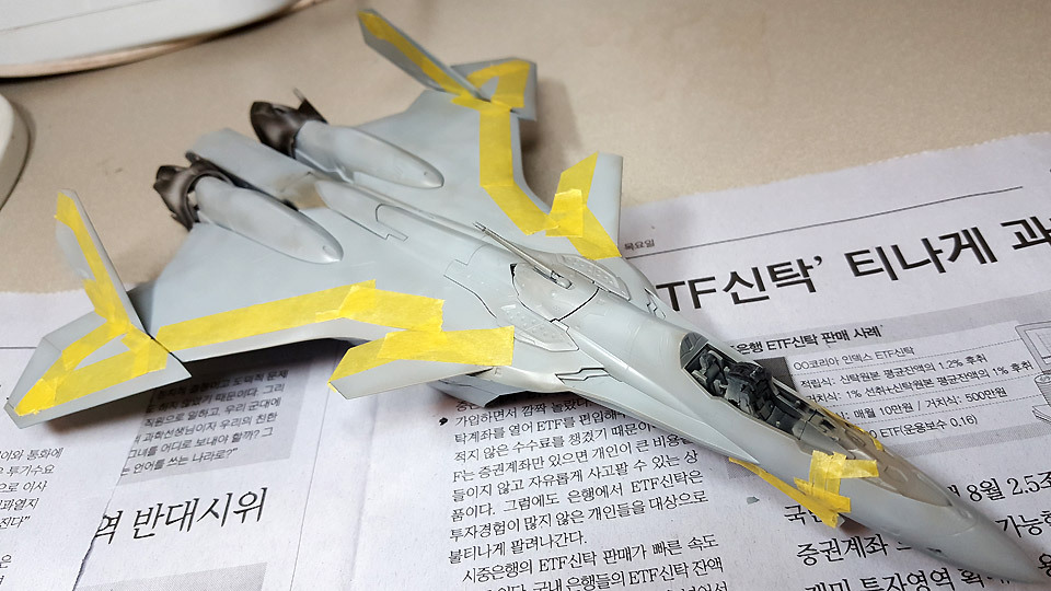 날개 테두리 부분은 더 밝은 색상으로 칠하게 되어 있어서 일일이 마스킹을 해가고 있습니다.