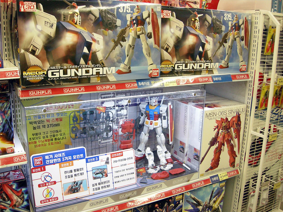 건담이나 마크로스, 캐릭터 피규어와 같은 상품들은 매장 직원들 스스로가 조립을 해서 이렇게 디스플레이를 해놓는데