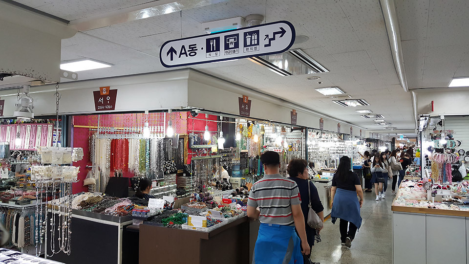 동대문역 8번 출구로 나와서 JW매리어트 호텔 옆의 동대문 종합시장 5층엘 가면 A동과 B동으로 나뉘어 있습니다.