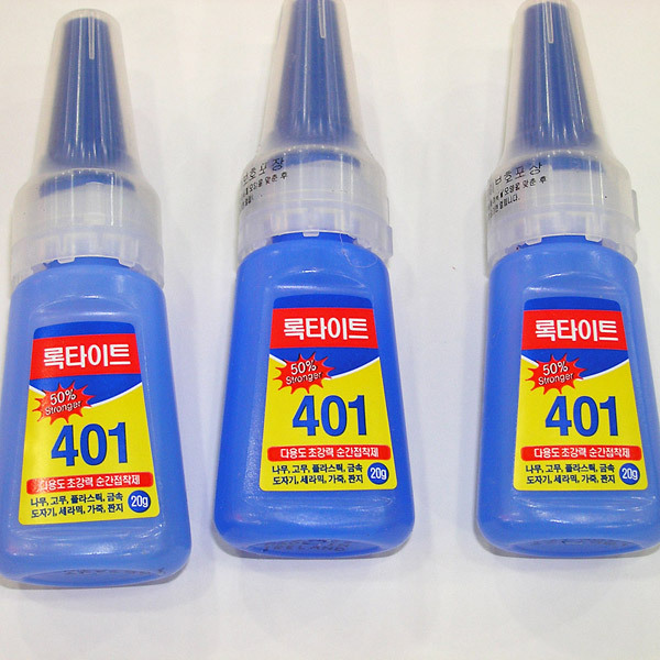 401 순간접착제는 끈적끈적한 점도가 있어서 가장 흔하게 사용되는 녀석이고요