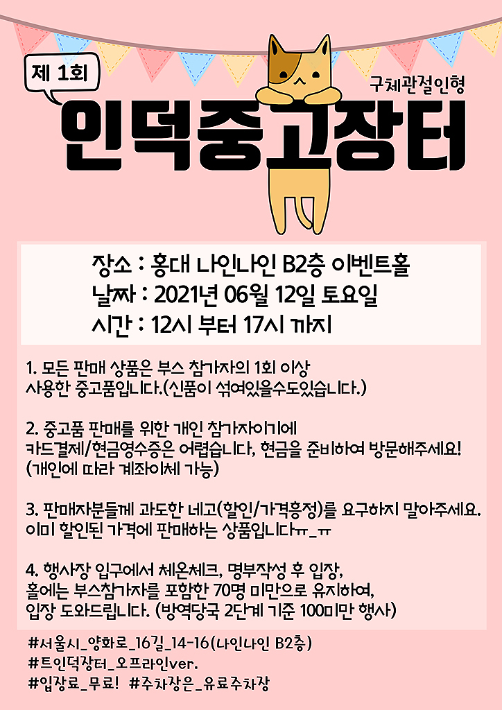 홍대 나인나인에서 6월 12일 토요일 딱 하루 중고장터가 열린다고 합니다.