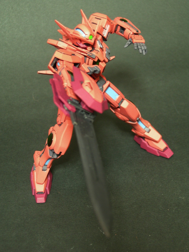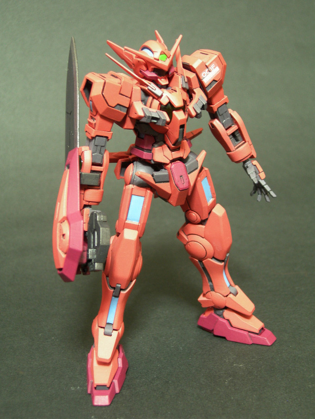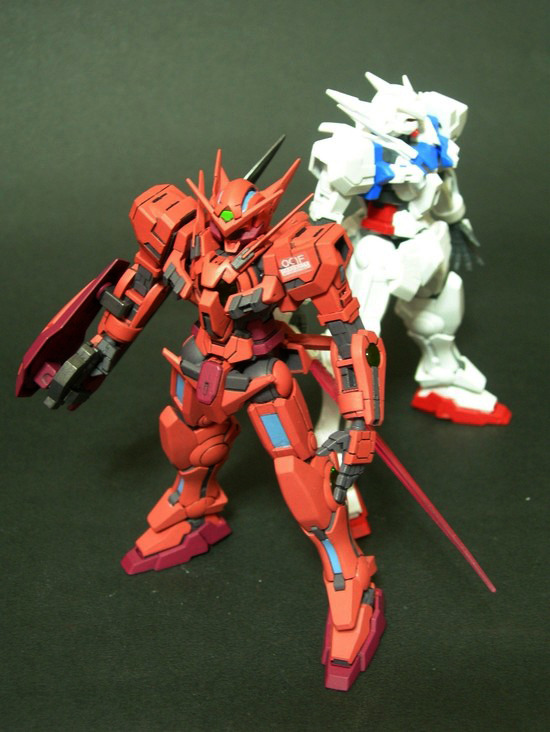 무기는 원래 원작설정에 없지만 에깃아의 GN소드를 착용해주었고 원작의 주인공녀석이 아스트레아의 마스크를 씌우는걸 싫어했지만 다음에 제작할 아스트레아를 위해 일부러 마스크버전으로 해주었습니다.