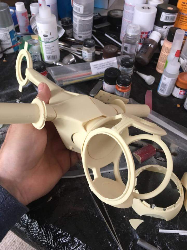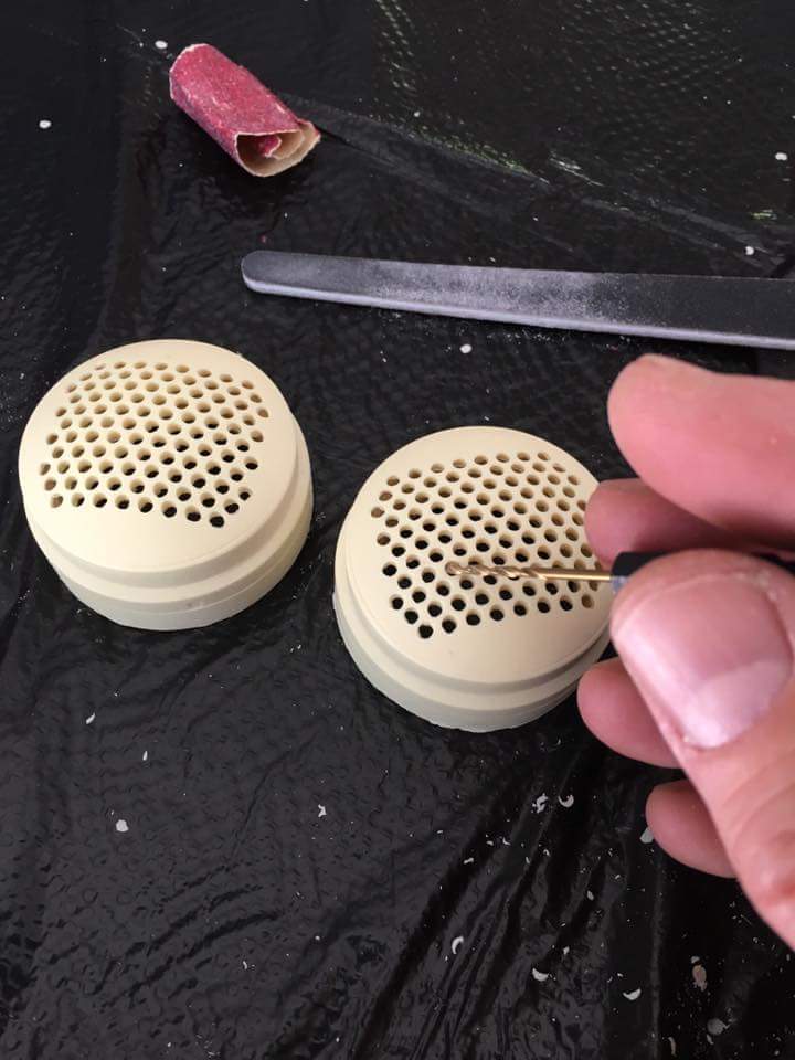 이렇게 큰 레진 덩어리를 사포질하면서 파팅 라인을 제거하고 수축도 잡으면서 작업해줘야 하는데