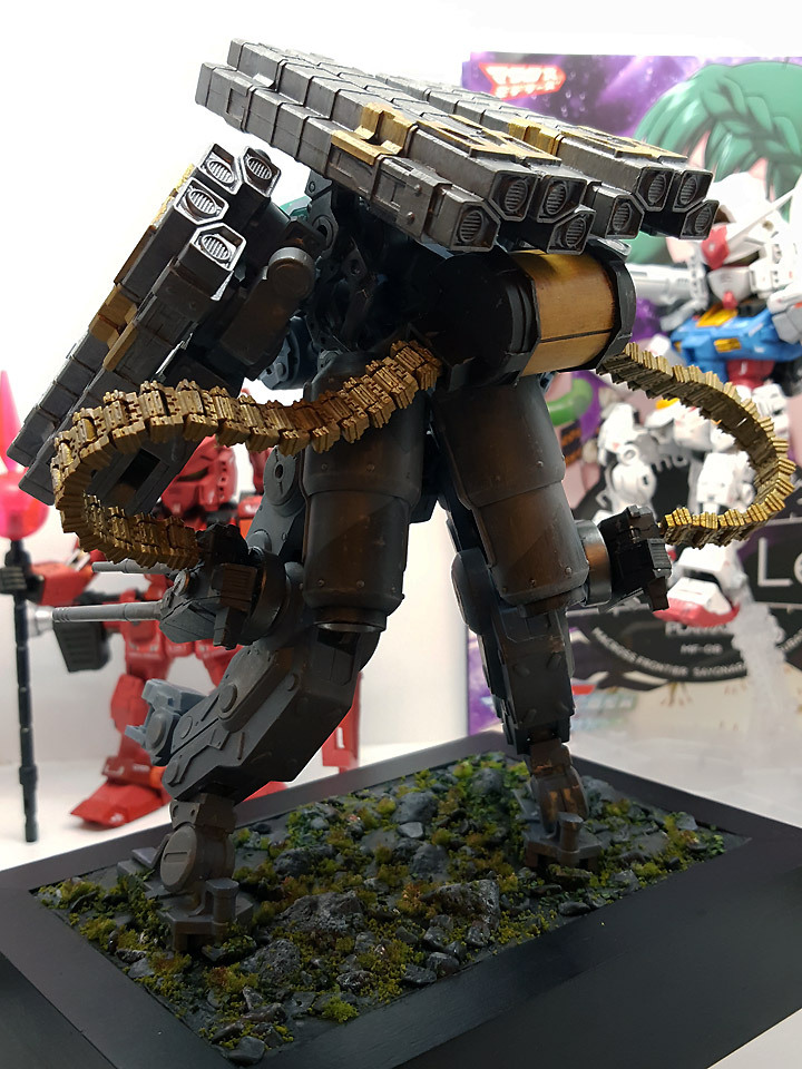 어깨와 등쪽에 M.S.G 옵션 파츠를 장착했더니 헐거운 관절 때문에 자꾸만 뒤로 넘어 가더랍니다.