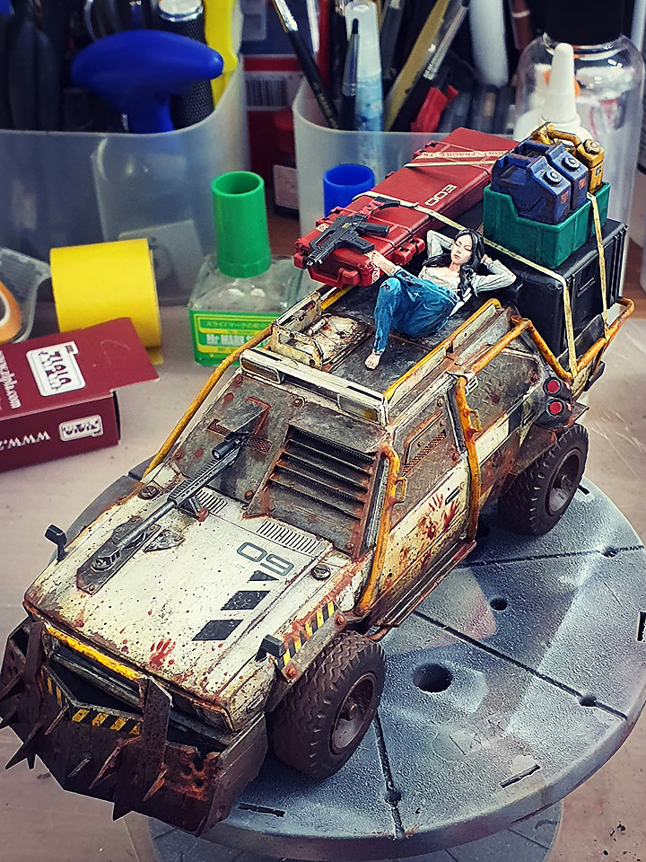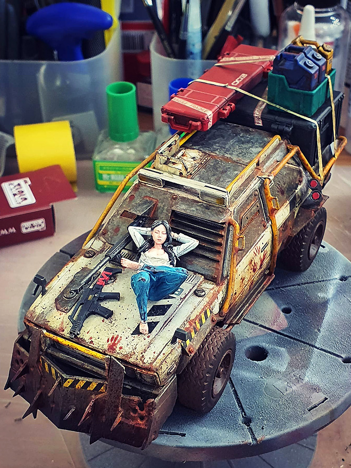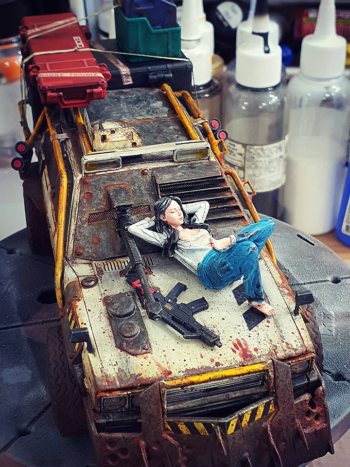 누워서 자고 있는 피규어를 본넷 위에다 올릴지, 천정에다 올릴지 고민이라고 하십니다.
