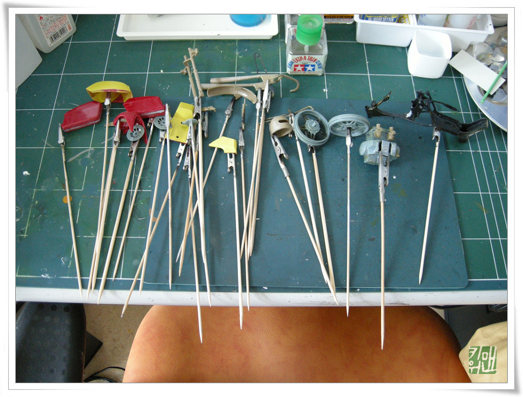 조립된 것을 분해하고 크롬은 락스로 빼고 재도색 준비중.