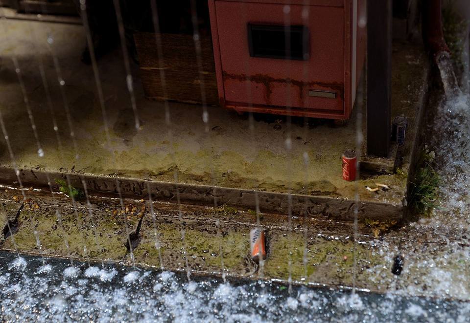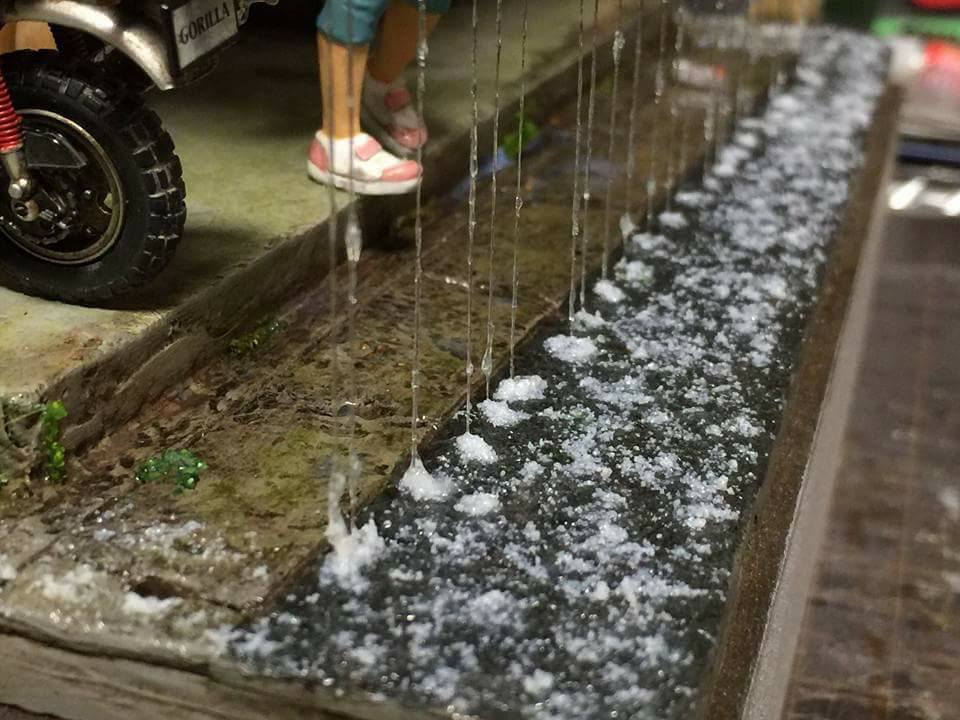자연 풍경을 디오라마로 작업할 때 가장 난해하고 어려운 작업 중의 하나가 바로 비오는 풍경을 연출하는 것이죠.