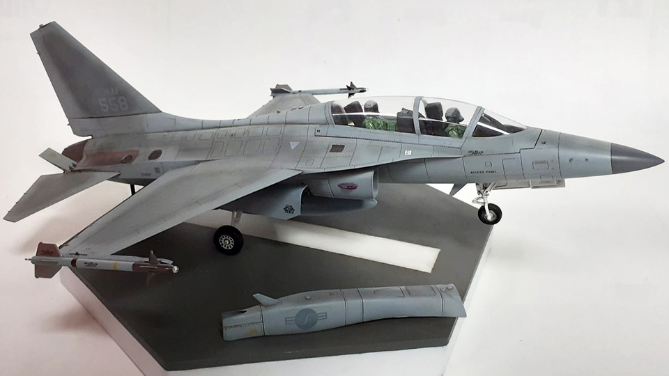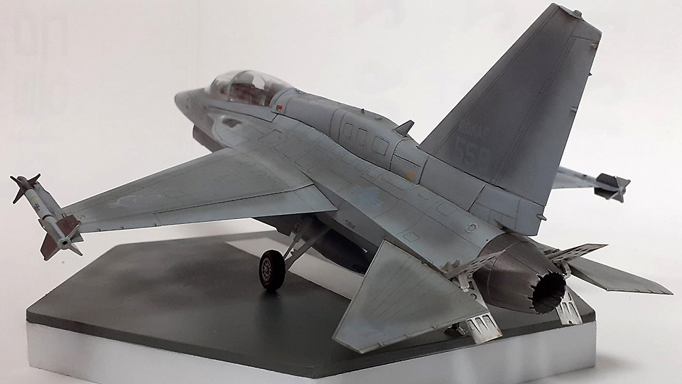 레진 부품과 대한민국 공군 데칼을 넣어 울프팩디자인에서 재포장한 키트로 보조연료탱크가 장착된 버전이죠.