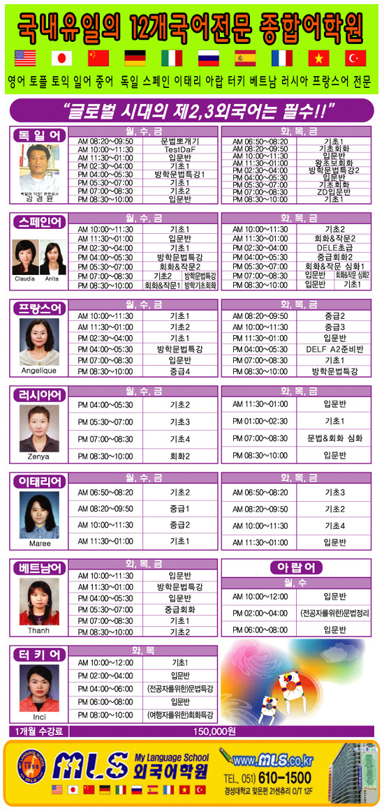 국내 유일의 12개국어 전문어학원 MLS에서 당신의 미래를 꿈꾸시기 바랍니다!