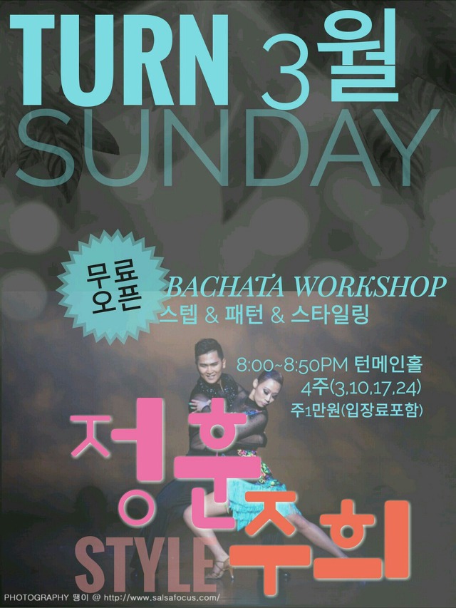 무료오픈워크샵 : 바차타 스텝&패턴&스타일링 강사 : 정훈&주희 시간 : PM 8:00~8:50