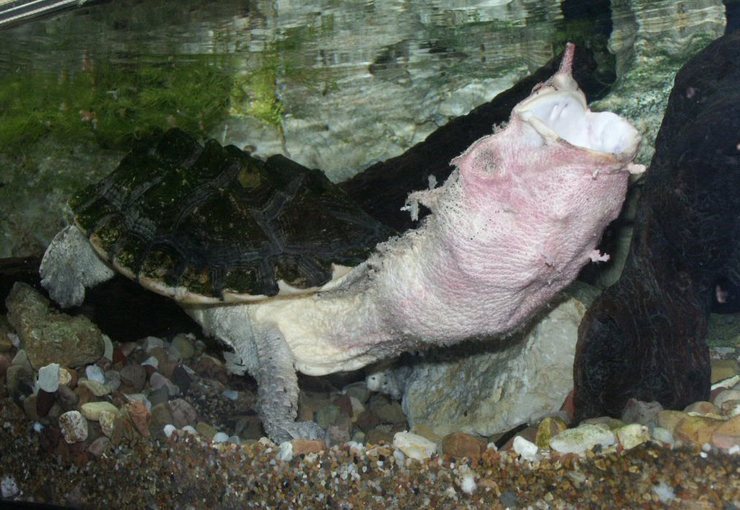 9. 습성: 마타마타는 평소에는 목을 움츠리는 형태를 취하다가 먹이를 사냥할 때에는 입을 열고