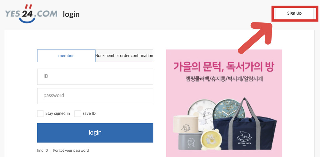 **** IF YOU DO NOT HAVE YES24 (KOREAN) ACCOUNT, PLEASE FOLLOW THE STEPS BELOW, OTHERWISE PLEASE GO TO STEP 5 TO CONTINUE ****