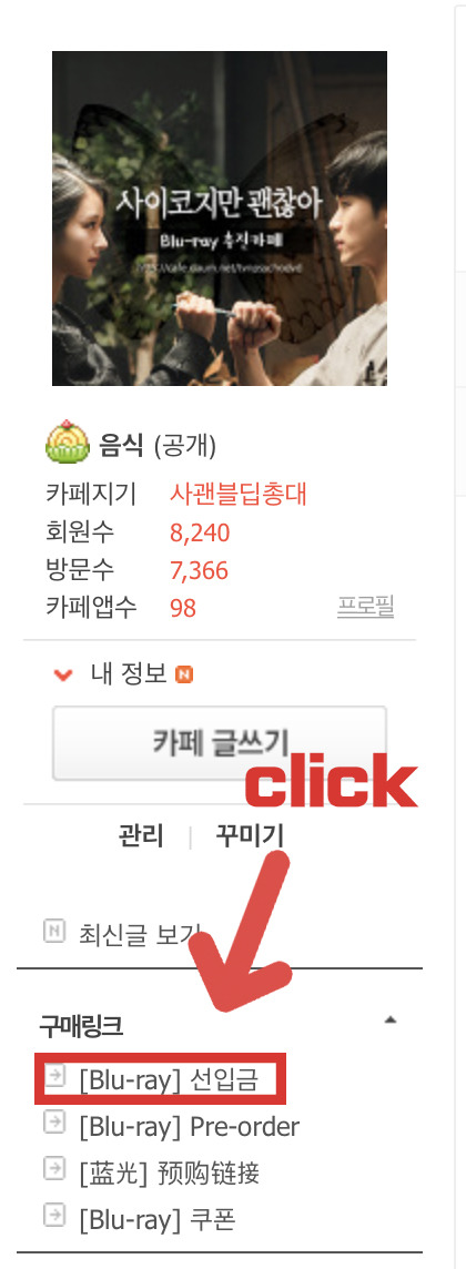 1. Click [Blu-ray] 선입금 from Cafe menu bar.