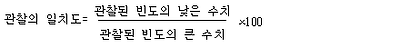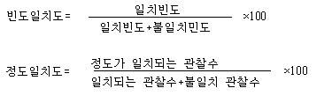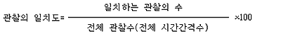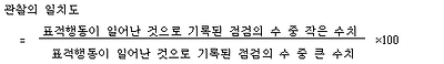 관찰의 신뢰도를 높이기 위하여 두 명의 관찰자를 두어야 하고 관찰의 신뢰도는 관찰의 일치도롤 계산되며 그 계산방법은 다음과 같다.
