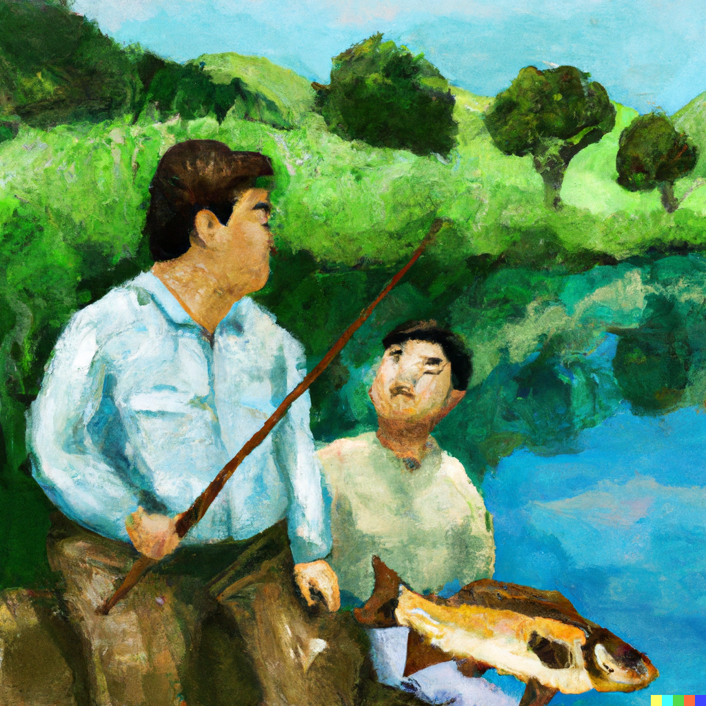 아버지와 아들이 함께 낚시를 하며 새로운 세상을 알려주는 모습을 그린 그림은 매우 따뜻하고 감동적인 느낌을 줍니다. 그림 속에서는 아버지와 아들이 함께 호수에서 낚시를 하면서, 아들은 큰 물고기를 잡을 수 있을지 물어보며 설레이는 마음을 표현하고 있습니다. 아버지는 이에 대한 답변으로 새로운 세상과 미지의 가능성을 얘기해주며, 아들의 궁금증을 해결해주고 있습니다.