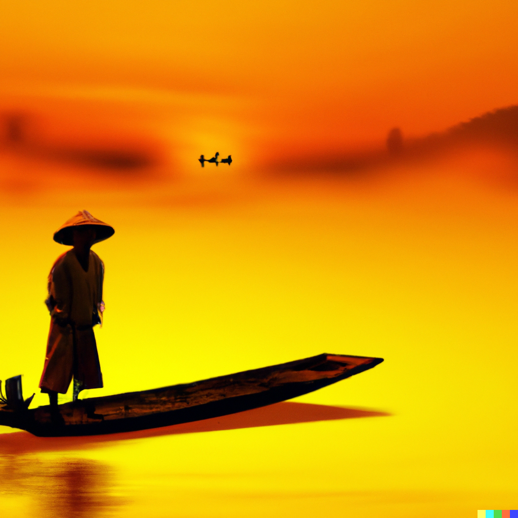 저녁노을이 바다 위에 떠오르는 그림은 자연의 아름다움과 인간의 존재감을 아름답게 표현한 작품입니다. 그림 속에서는 낚시꾼이 바다 위에서 담담하게 세월을 받아들이고 있습니다. 그의 얼굴은 조용하고 진지하며, 그의 모습은 매우 안정적입니다.