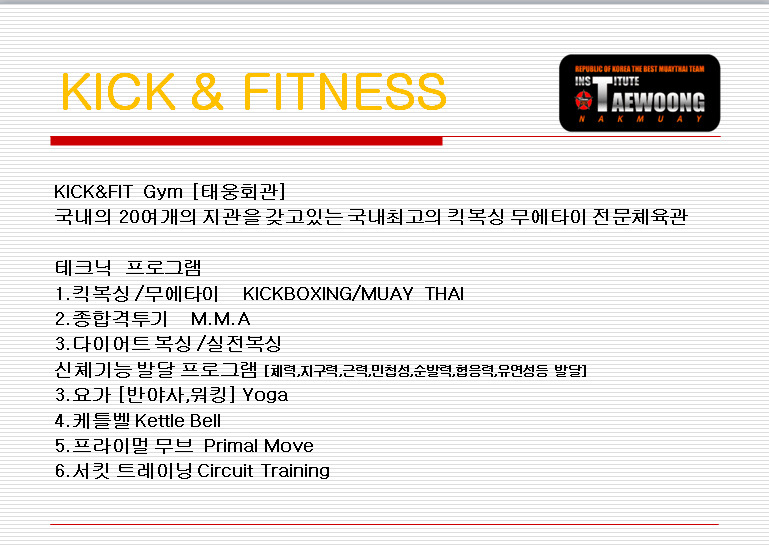 태웅회관은 단한번도 킥복싱,무에타이,MMA,케틀벨등을 접하지못한 생초보분들을 환영합니다. *^^* 문의: 02-3445-3398 카카오톡 ID :sschlgud |