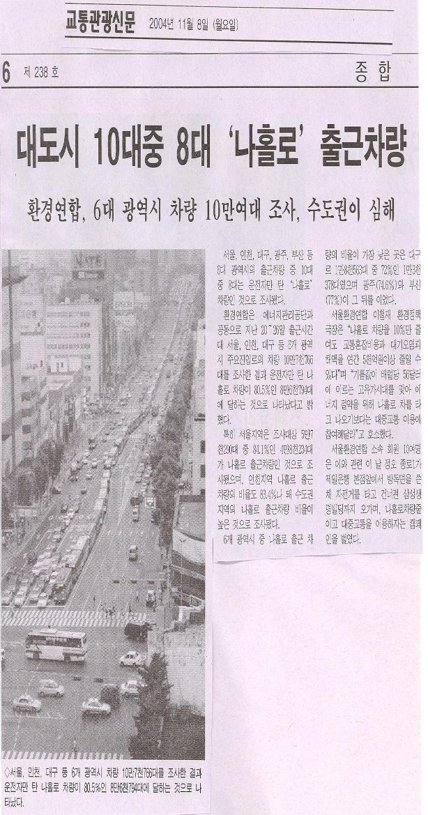 ▶ 승차인원은 2004.환경연합이 조사한 근거에 의하면 4륜 승용차의 경우 80.5%가 나홀로 차량으로