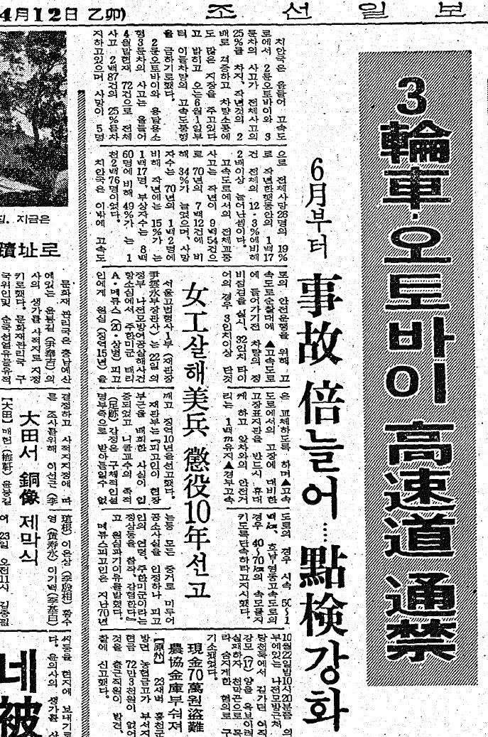 작성자권총 작성시간 11.06.27 1972년도 사설이 지금보다 훨씬 낫습니다....지금은 이륜차가...죄인인시대..아닙니까?...ㅜ;;ㅜ;