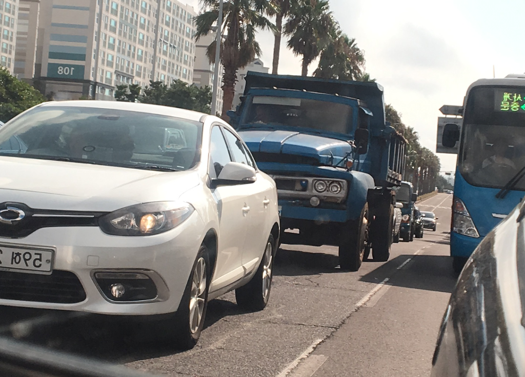 그게 지금 온전한 상태로 국내에서 영업운행을 하고 있군요, 짐칸을 보니 덤프용도대로 지금도 골재를 운반하는듯 합니다.