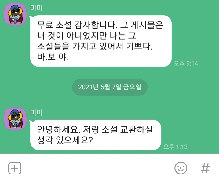 어제 먹튀했을 때 텍본 몇 개 내가 먼저 보내준 거 정도야 그냥 기부한셈이라 신경안썼어요ㅋㅋ