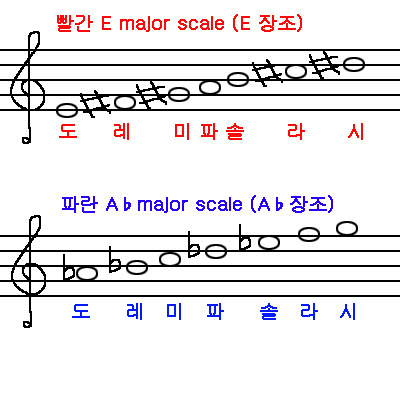 ♭이 붙는 경우의 scale은 직전에 플랫이 붙은 자리입니다.
