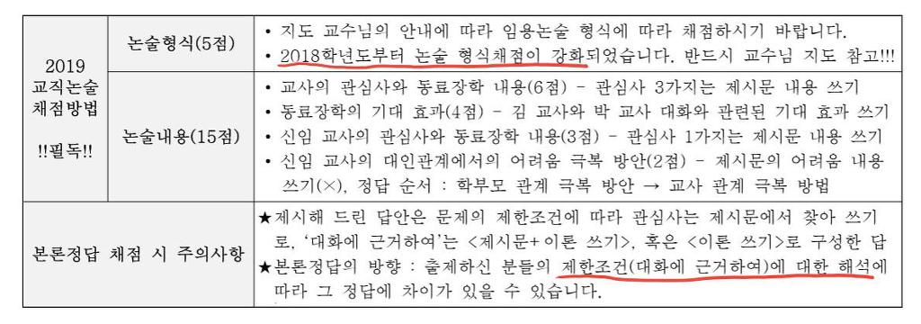 교직논술 채점이 관련된 예시답안입니다 꼭 확인해주세요 ^^