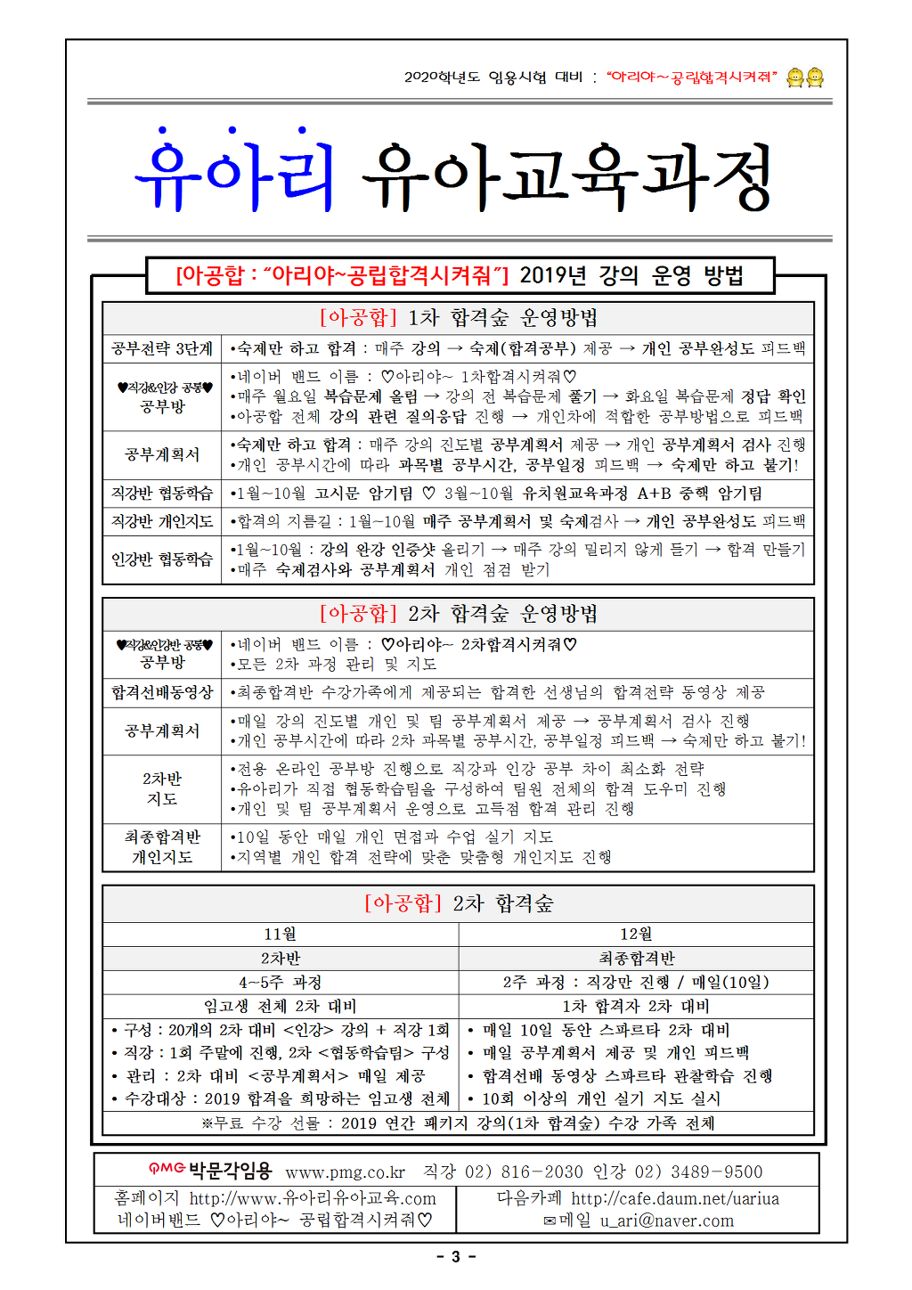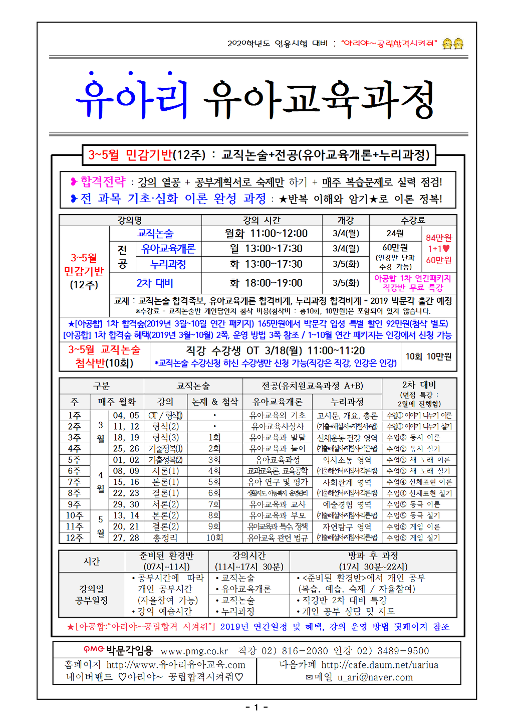 : 3/5(화) 누리과정 개강/2차 특강 개강