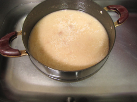 미숫가루 색상이 납니다. 이쯤에 족은 건져 올리면 부셔지는 정도 됩니다.