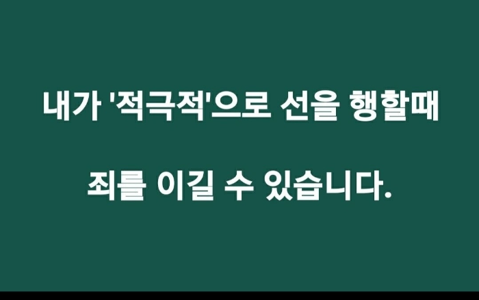 오늘도 우리 모두의 마음 속에 “주님, 저는 죄인입니다. 그러나 주님의 은혜로 살아갑니다.” 이 고백이 살아 있기를 소망하며, 오직 예수님의 보혈만 의지하며 겸손히 살아가길 기도합니다.