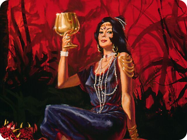 「. . . 이리 오라. 많은 물 위에 앉은 큰 음녀의 받을 심판을 네게 보이리라. 땅의 임금들도 그로 더불어 음행하였고 땅에 거하는 자들도 그 음행의 포도주에 취하였다 하고, . . . 내가 보니. . . 그 여자는 자주 빛과 붉은 빛 옷을 입과 금과 보석과 진주로 꾸미고 손에 금잔을 가졌는데 가증한 물건과 보석과 그의 음행의 더러운 것들이 가득하더라」(계 17:1-4).