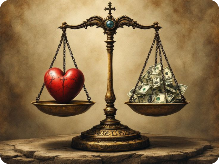 「나는 한 천사가 손에 저울을 가지고 서서 하나님의 백성 특히 젊은이들의 생각과 관심을 달아보는 것을 보았다. 저울(天秤)의 한 쪽에는 하늘을 향한 생각과 관심이 놓여 있었고 다른 쪽에는 세상에 대한 생각과 관심이 놓여 있었다. 이 쪽 저울에는 소설을 읽는 것과 의복과 외모와 허영과 교만들에 관한 생각이 실려 있었다. 저울을 가진 하나님의 천사가 하나님의 자녀들이라고 공언하는 자들 즉 세상에 대하여는 죽고 하나님께 대하여는 살았다고 주장하는 자들의 생각을 달아보는,