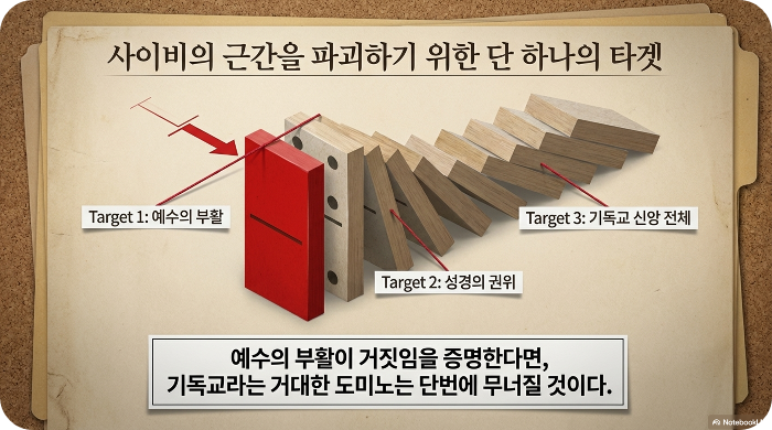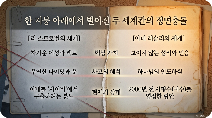 리는 결심했다. 아내를 구출하기 위해서는 그녀가 믿는 그 '허구'의 근간을 완전히 파괴해야 한다고. 그는 기자의 직관과 법률가의 논리를 총동원해 기독교의 핵심인 '예수의 부활'을 정조준했다.