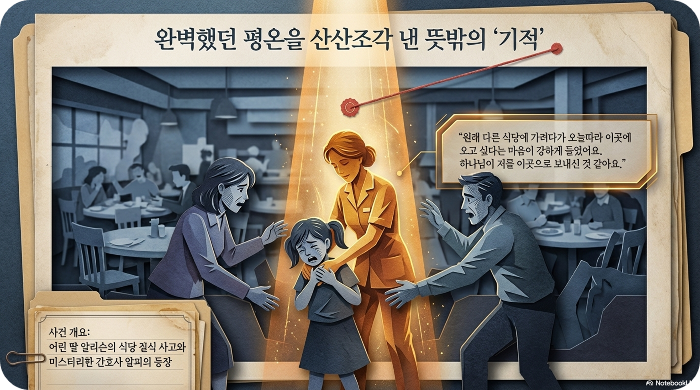 그의 아내 레슬리와의 삶은 완벽해 보였다. 리는 승승장구하는 기자였고, 가정은 평온했다. 하지만 그 평온함은 어느 날 저녁, 식당에서 벌어진 작은 사고로 인해 산산조각 나기 시작했다. 어린 딸 알리슨이 사탕이 목에 걸려 질식할 뻔한 절체절명의 순간, 근처에 있던 간호사 알피가 나타나 아이를 구했다.