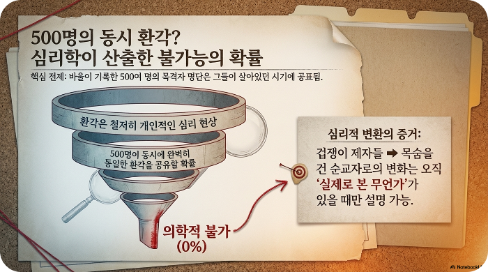 "500명이 동시에 똑같은 환각을 볼 확률은 의학적으로 불가능합니다."