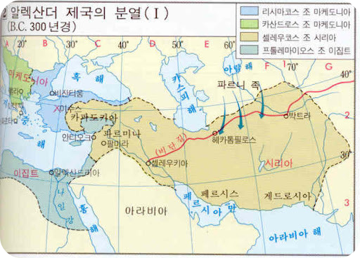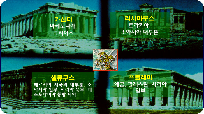젊은 나이에 왕이 되어 세계 정복에 나섰다가 기원전 323년, 33세에 요절한 알렉산더 대왕에게는 유복자 외에는 후계자가 없었습니다. 그래서 그는 임종의 자리에서 자신이 정복한 나라를 “힘센 자가 차지하라”는 유언을 남겨서 힘센 자가 나라를 다스리라고 했습니다. 알렉산더 대왕 사후 22년동안 계속된 장군들의 싸움은 기원전 301년 입수스 전투를 계기로 힘센 네 장군에 의해서 정확하게 나누어졌습니다.