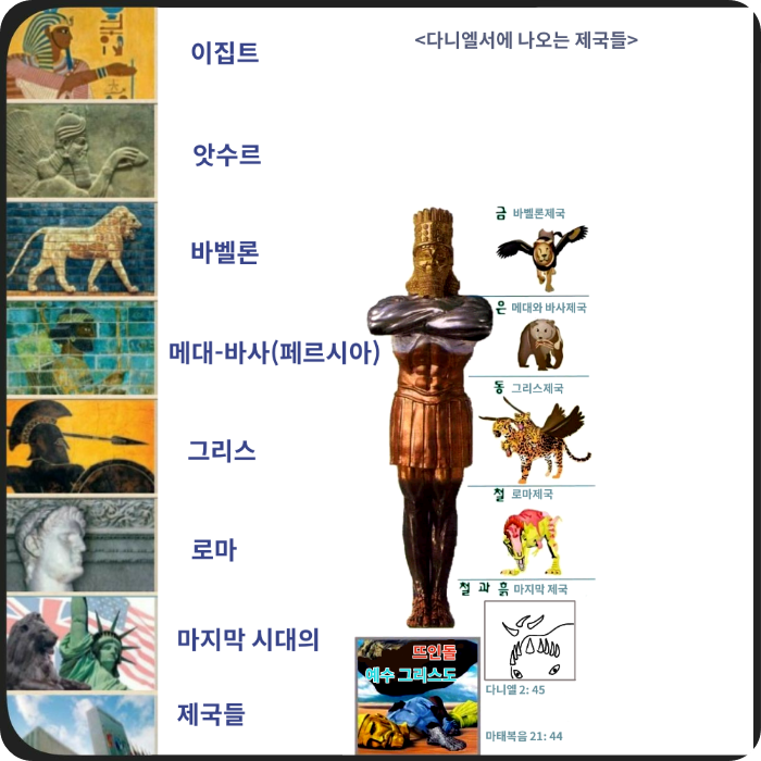 이런 순서로 이런 나라들이 지배를 하게 될 것이라고 하였습니다. 하나님께서 예언하신 내용이 정확하게 이루어진 것을 살펴보았습니다.