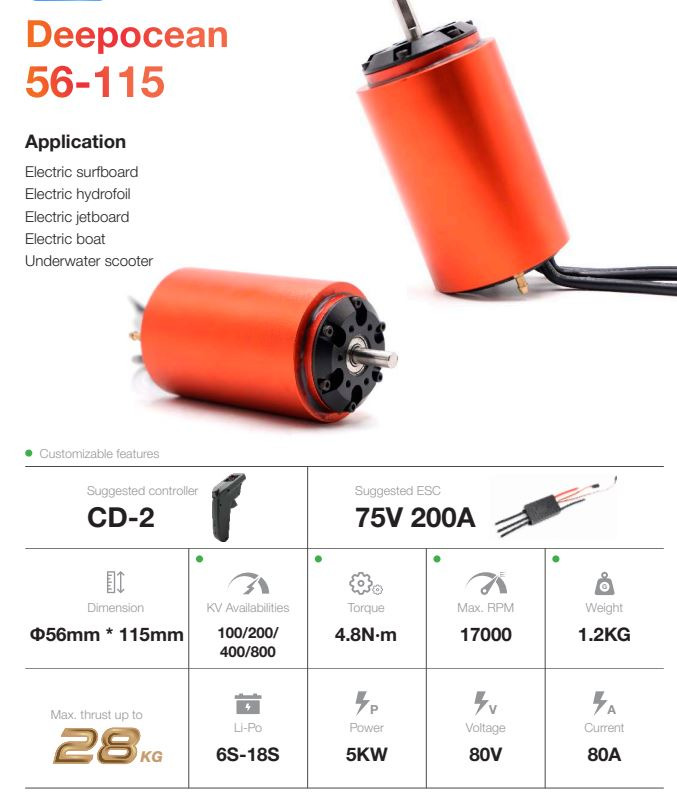 - SPEC : BLDC MOTOR 심해: 5KW, 80V 80A, 66-115mm