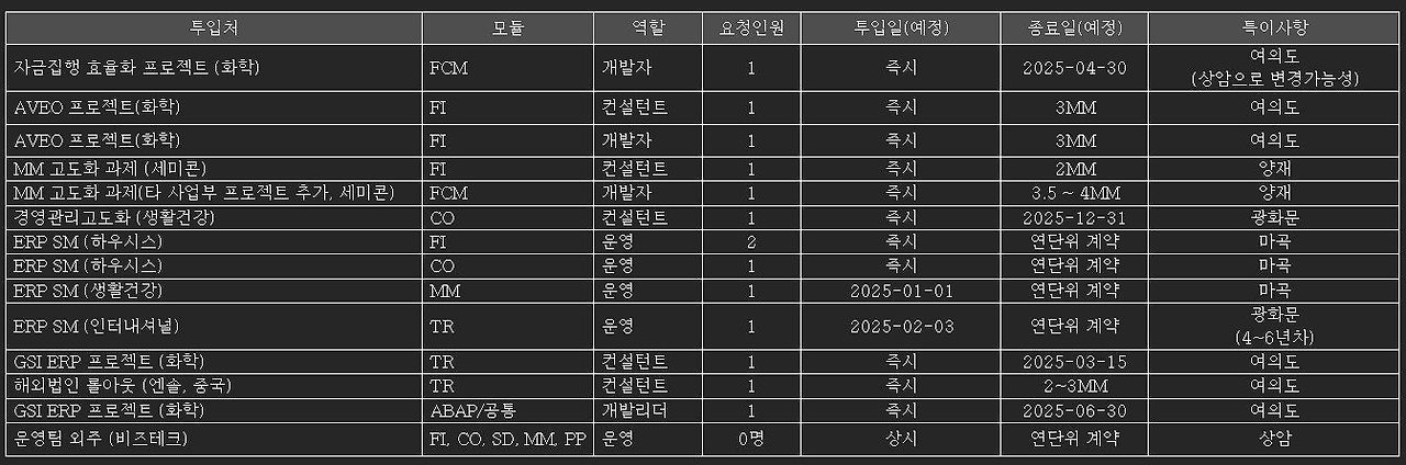 FI, CO, SD, MM, PP/운영/0명