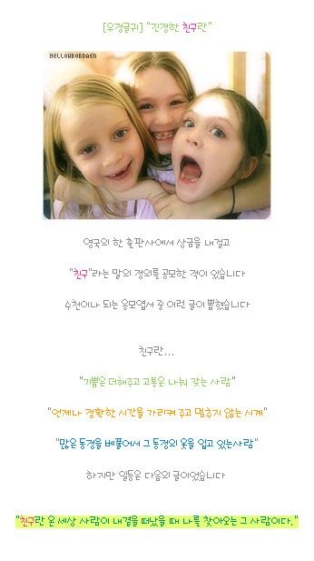 진정한 친구란? 작성자jsocp|작성시간11.04.08|조회수24 목록 댓글 1 글자크기 작게가 글자크기 크게가 다음검색 현재 게시글 추가 기능 열기 북마크 공유하기 신고 센터로 신고 댓글 댓글 1 댓글쓰기 답글쓰기 댓글 리스트 작성자jeong | 작성시간 11.04.08 마음에 와 닿네요. 댓글 전체보기