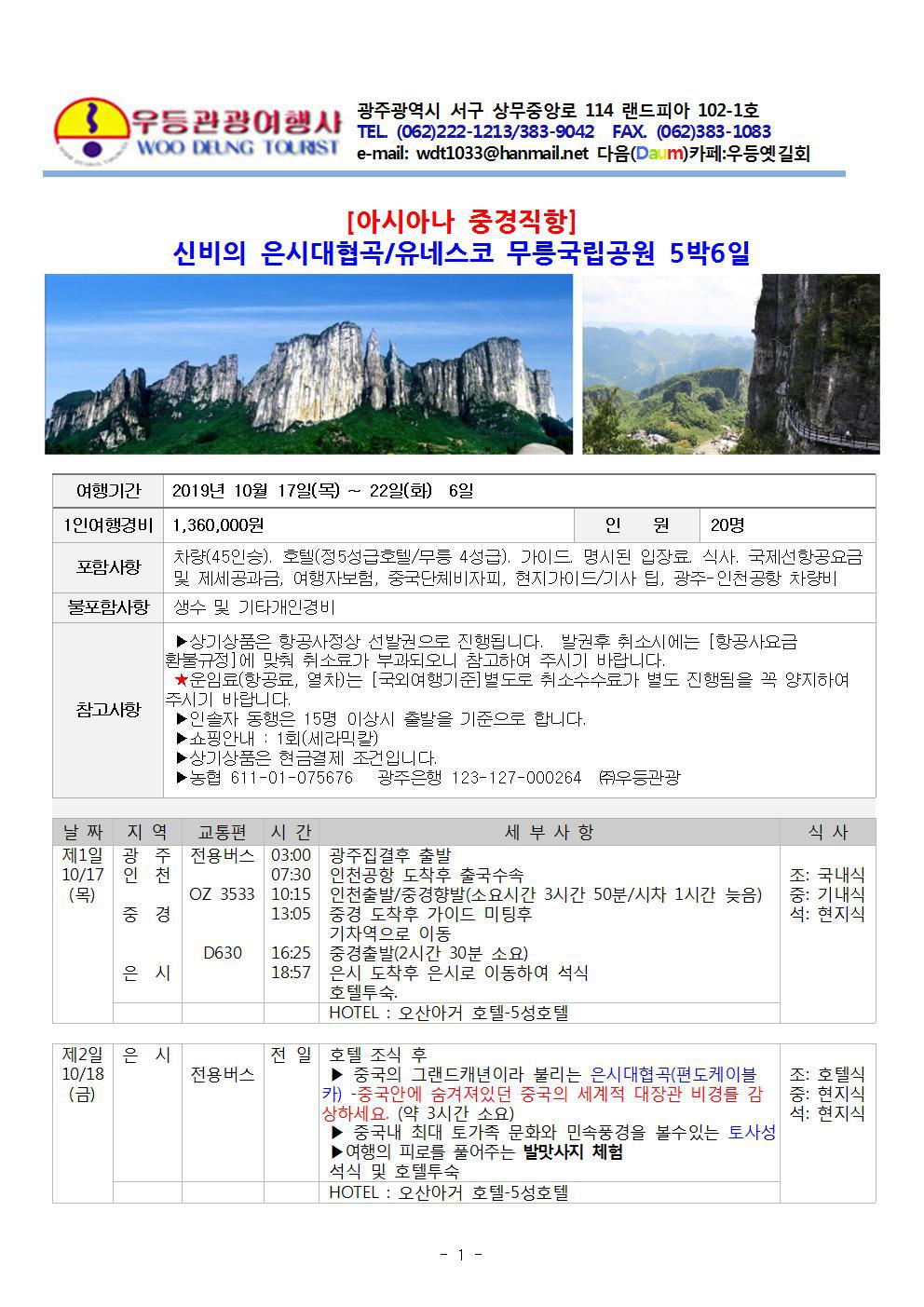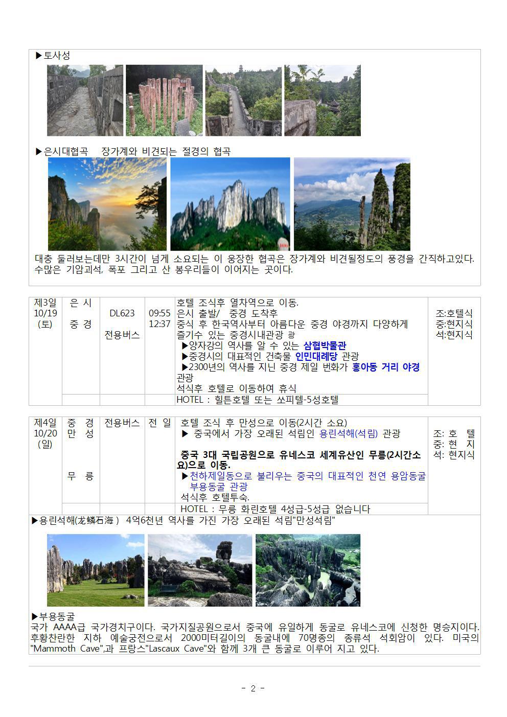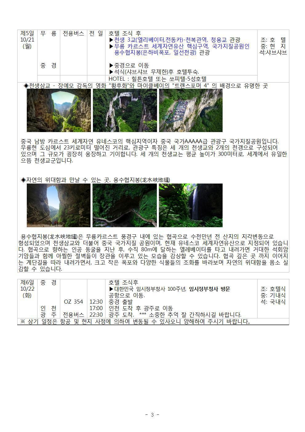 ★중국 3대 국립공원으로 유네스코 세계유산인 무릉 관광