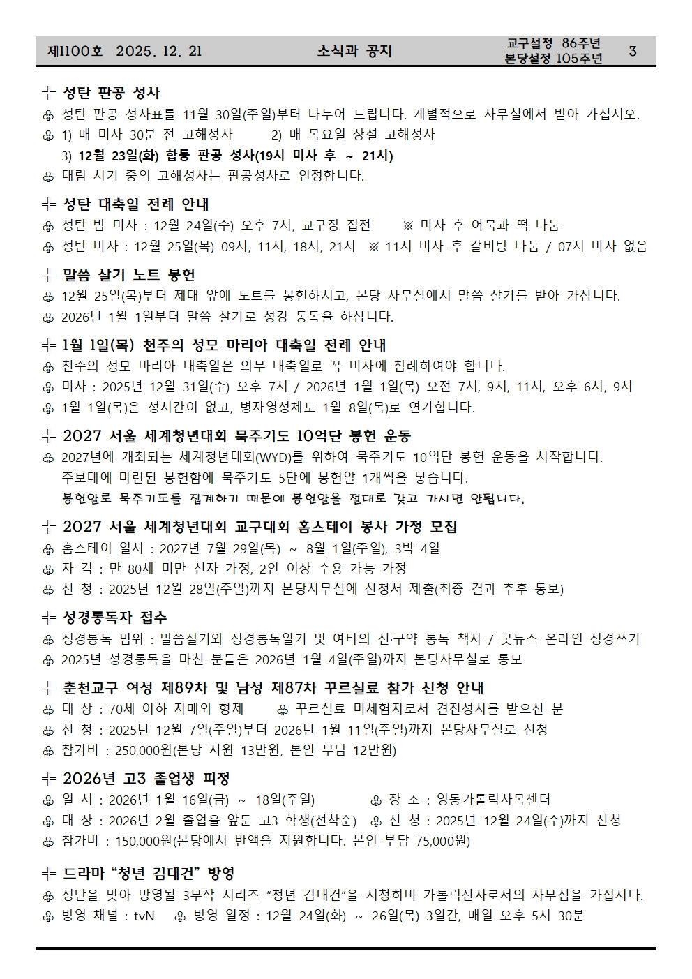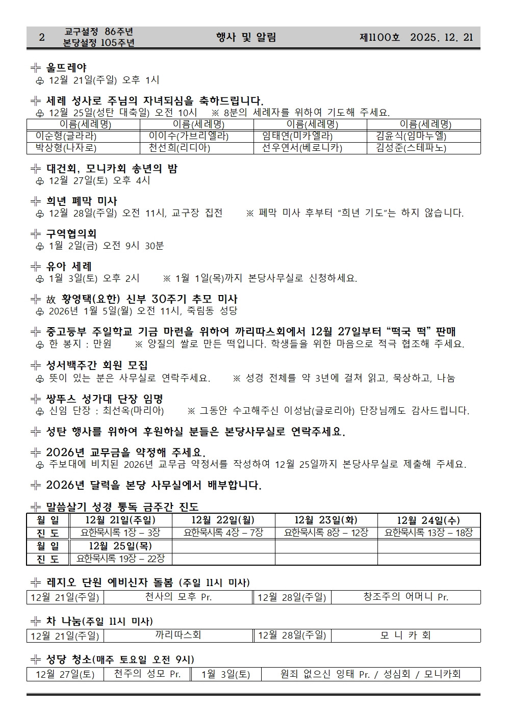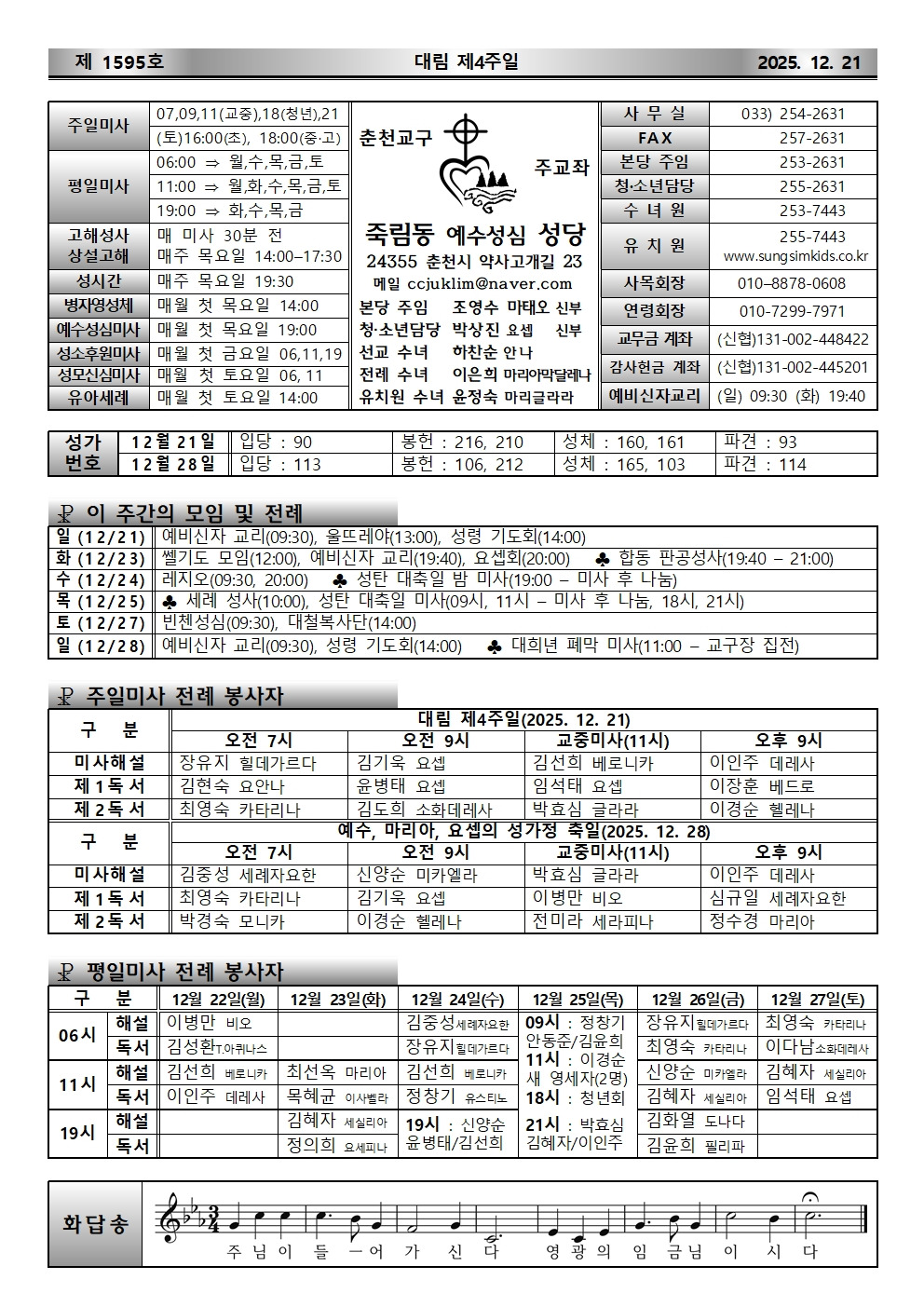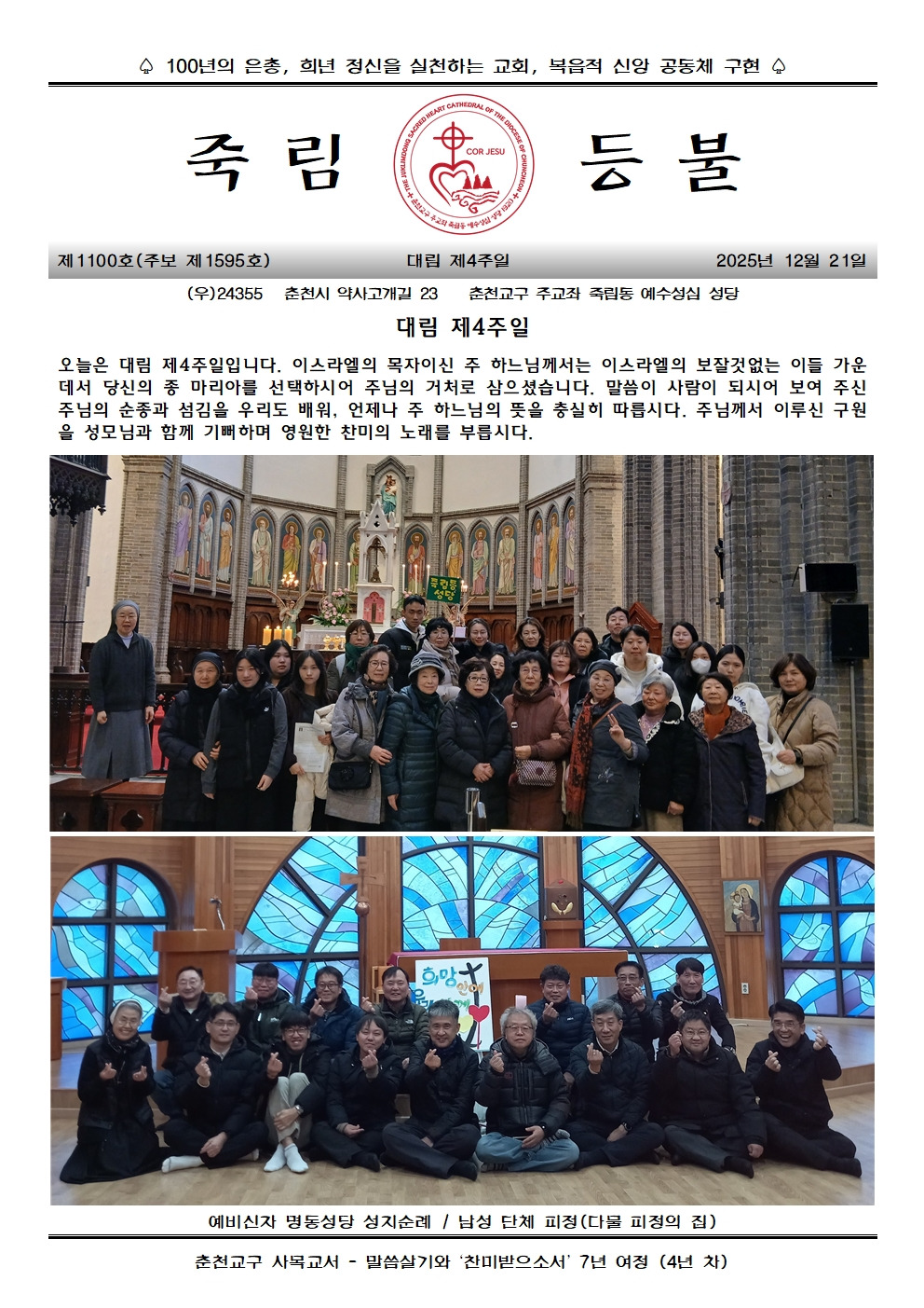 <주보> 2025년12월21일 죽림등불제1595호 대림제4주일 작성자ulso|작성시간25.12.19|조회수478 목록 댓글 0 글자크기 작게가 글자크기 크게가 다음검색 현재 게시글 추가 기능 열기 북마크 공유하기 신고 센터로 신고 댓글 댓글 0 댓글쓰기 답글쓰기 댓글 리스트
