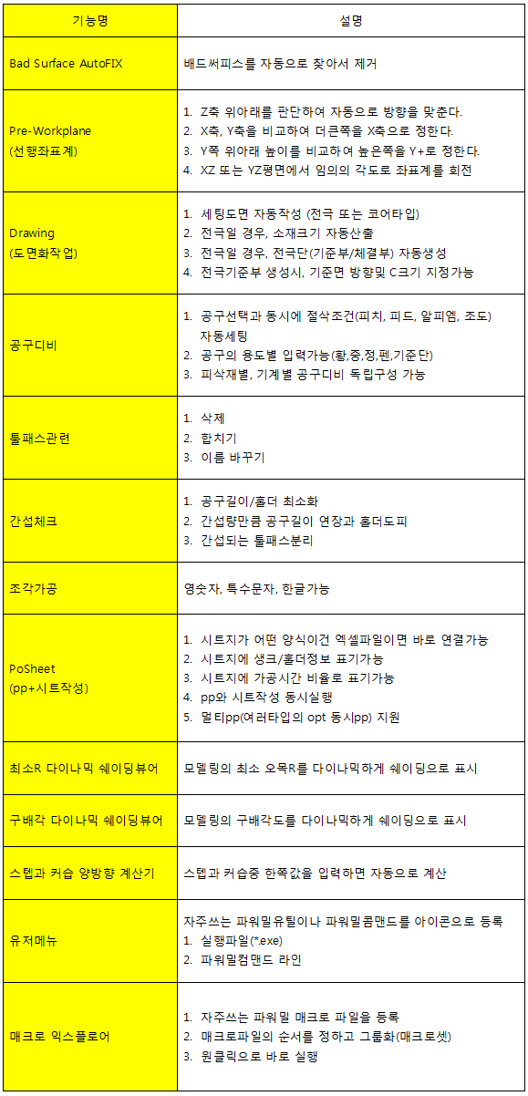 [태그] PowerSHEET, PowerMILL, 파워시트, 파워밀, 자동캠, 자동화캠, 자동툴, CNC, MCT, CAM, 머시닝센터, 흑연전극, 전극가공, 전극자동, 전극단, 기준단, 전극도면, 매크로, 포스트, 공구, 공구DB, 그라파이트, 작업시트
