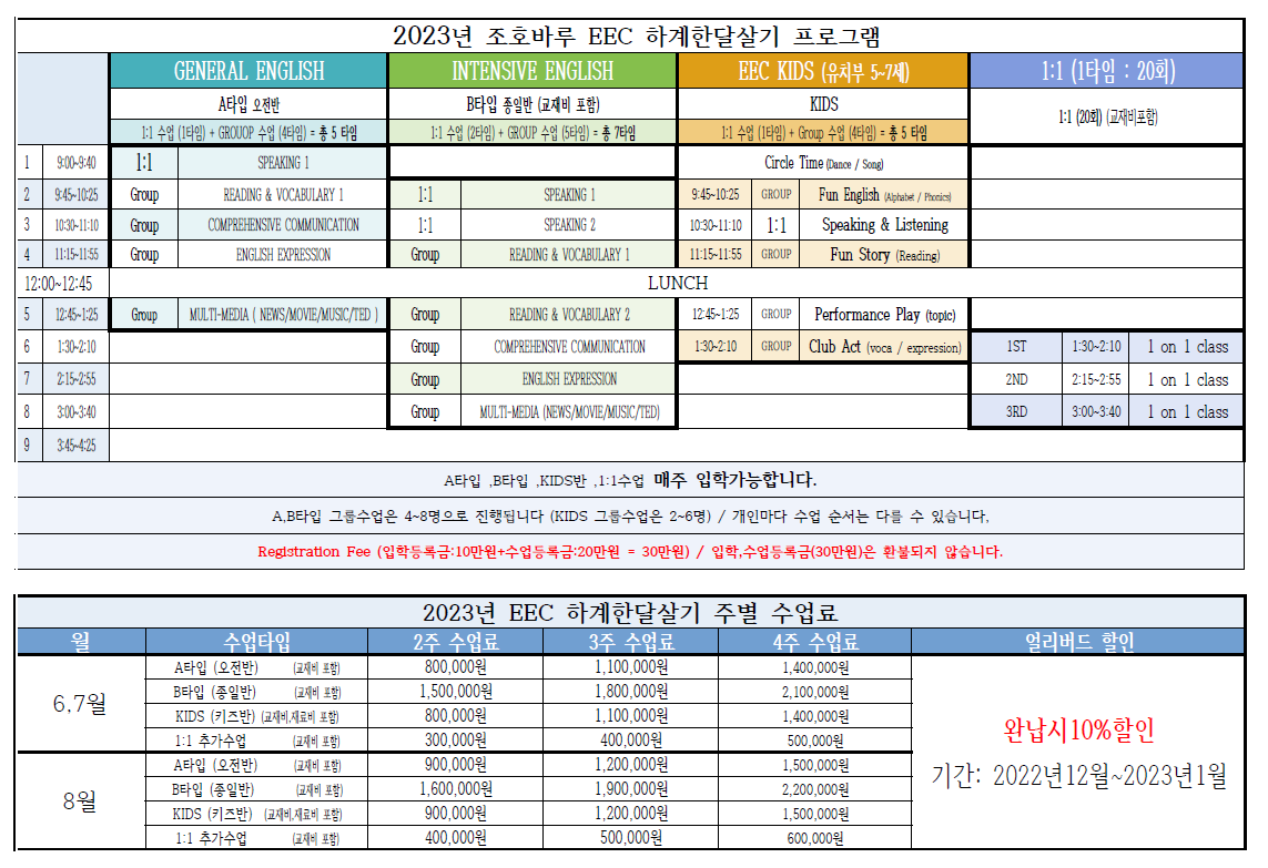 2023년 1월 31일까지 학비 완납 시 10%할인 혜택을 받으실 수 있습니다.