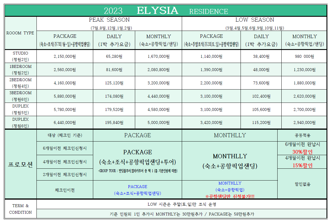 비수기와 성수기에 엘리시아콘도는 가격차이가 크게 납니다.