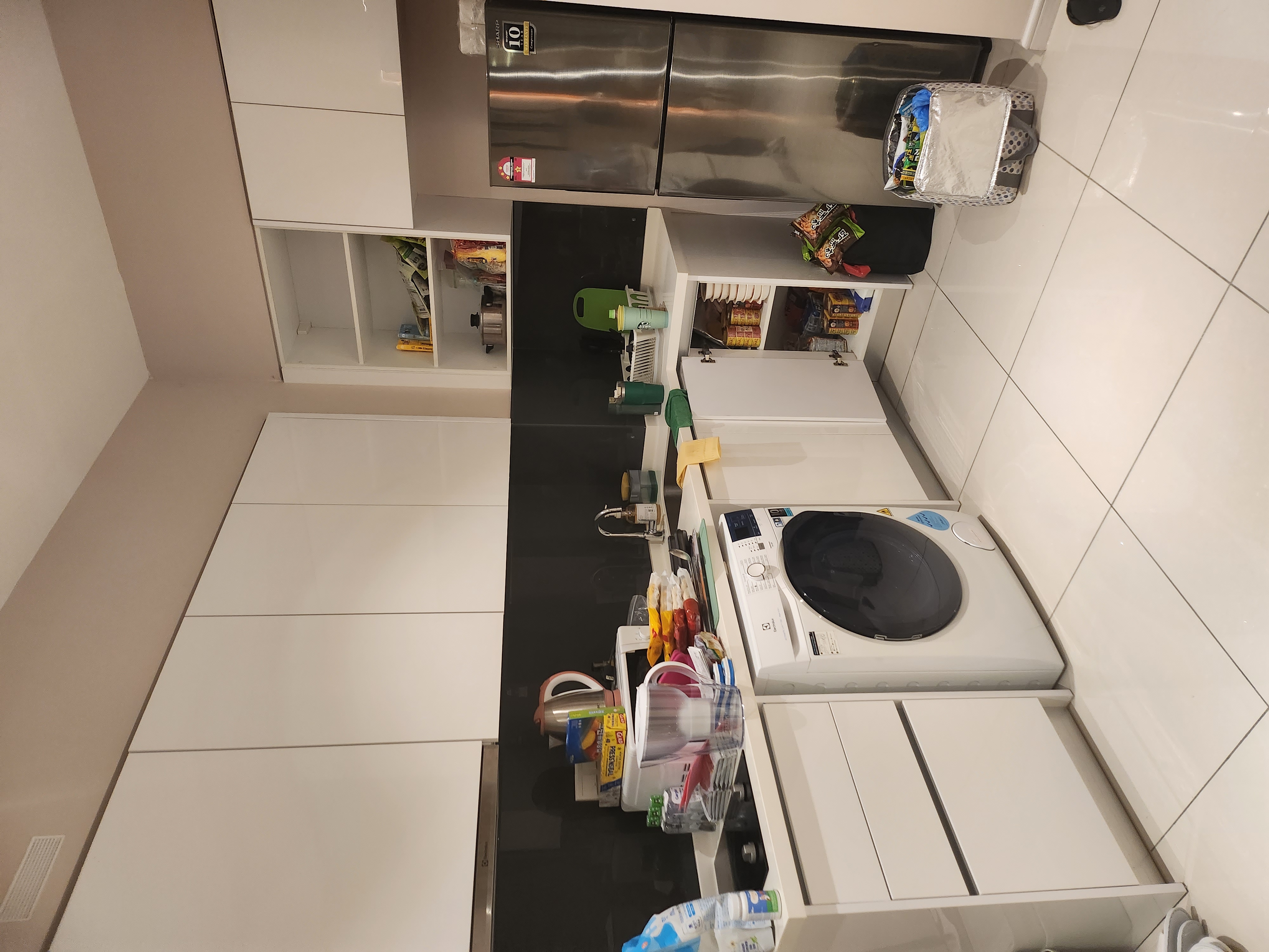 수납은 충분했고 주방도구는 사용감이 있었고 행주나 주방세제는 사용하기가 어려울것같아 제가 한국에서 가져왔고 후라이팬 ,뒤집기,칼,도마는 사용하기가 어려울것같아 직접 사왔습니다. 설거지가 안되어있고 이전분이사용하시고 가신 기름때와 음식물이 그대로 있었습니다.