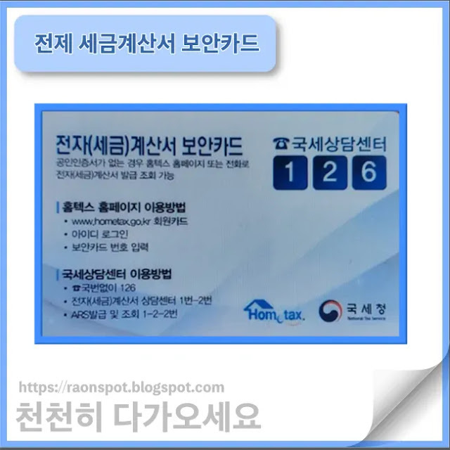 세금 계산서 발행 시 보안카드 등록 방법