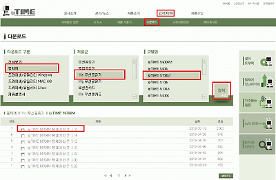 선택하신 후 [검색] 버튼을 클릭합니다. (예. 펌웨어 - 11n 유무선 공유기 - ipTIME N704M)