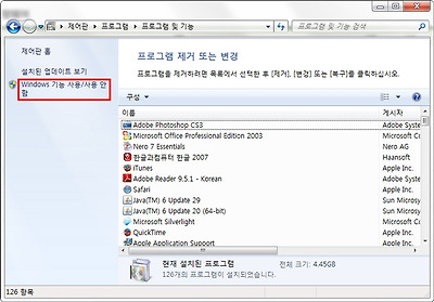 (3) [Windows 기능 사용/사용 안함] 메뉴를 클릭합니다.