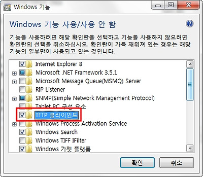 (4) [TFTP 클라이언트] 항목을 체크 후 [확인] 버튼을 클릭합니다.